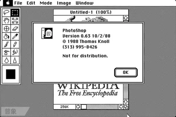 Photoshop 版本1.0.7于1990年2月正式发行,第一个版本只有一个800KB的软盘(Mac)。