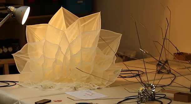 这个过程给予了荷兰Studio Drift工作室无限的灵感。其呕心沥血之作The Shylights(羞羞灯)便模拟了花朵绽放的情态,当Shylights 从九公尺高的天花板降下来时,在下降的过程中灯罩便会迅速打开,过程就如同缩时摄影一般迷人。