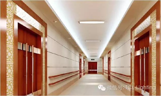 公共通道作为衔接各个部门的公共区域,其本身的照明要求不高,满足功能照明就可以了。一般根据通道天花的结构和高度,采用隐藏式灯具照明或筒灯、灯盘等照明。