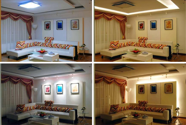 A、多种灯光组合打造百变客厅模式