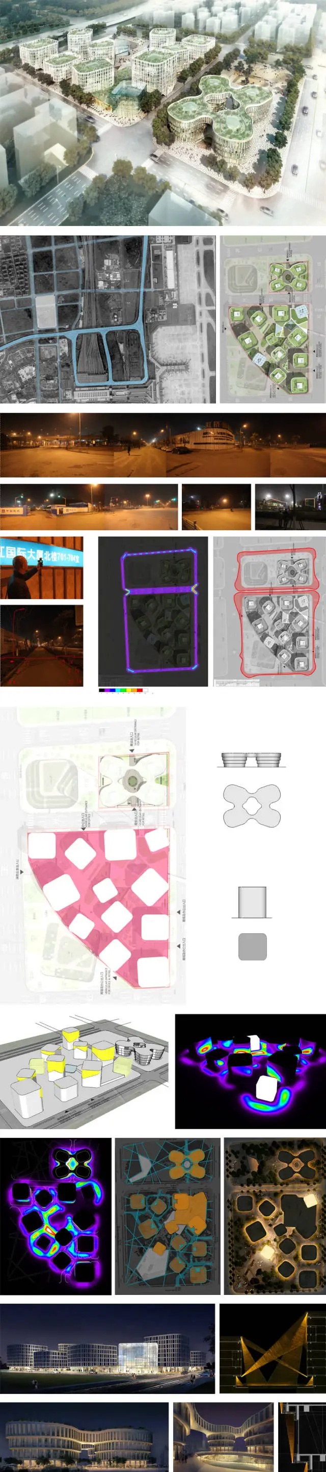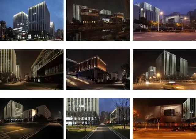 南京建邺区,双和办公区项目:用“不全”的照明,获得差异化的单体照明结果,营造丰富的街区印象的视觉感受。
