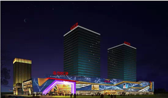 图:天津银河购物中心定位为体验型高级购物中心,在外形上几何造型大气简约,外观主色调呈淡雅米色。位于天津银河购物中心前是一座中心湖,周边绿化设计较多,在购物中心的夜色处理上,采用的是“动静结合”的思想来达到整体的效果。