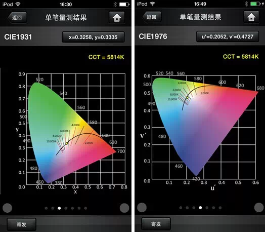 图:照明护照可量测CIE1931和CIE1976坐标体系中的相关色温值。
