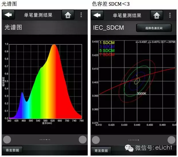 测试结果相当惊艳:色温2979K,一般显色指数Ra 94,红色还原能力R9高达75,蓝光控制得相当好,色容差SDCM<3。