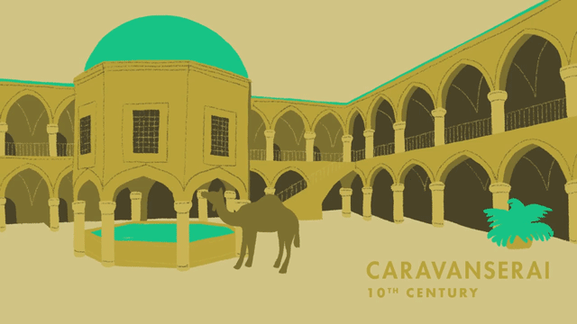 商旅驿站曾经遍布中东到中亚的广阔地域,中间宽阔的中庭为驼马们提供了足够的休息空间。