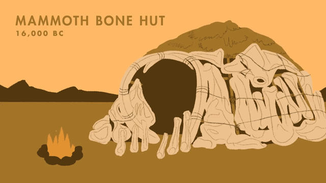以巨大的猛犸骨架为支撑,上覆猛犸皮,绝佳的保暖性能帮助人类度过了严酷冰河时期,顺便灭绝了这种巨大的哺乳动物。