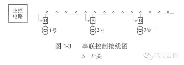 历史悠久的串联控制的优点是:下一个电源开关由前一段的低压照明路线末端控制,易实现、投资省。