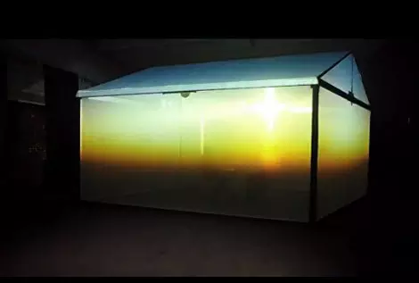 根据描述,这个玻璃房子代表了保护人们免受自然灾害影响的一个避风港。在展示过程中,参观者坐在房间里便可体会到降雨时的影音效果,之后便会立刻升级成暴风雨,大雨倾盆而下。最后,雨过天晴后的美景同样令人陶醉。