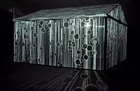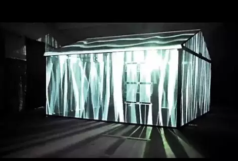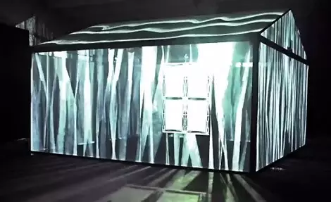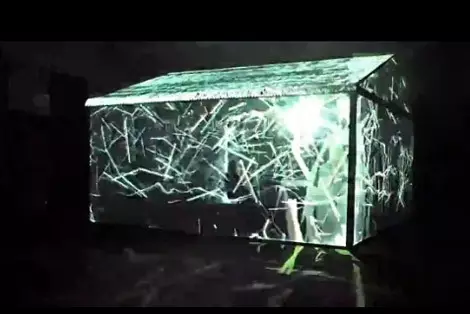 这件作品是上月在“汉堡摄影三年展”上展示的,它的主体是一个透明的房子,房顶和墙面都嵌入了 LED 灯。该作品名为《由内而外》(Insideout),通过交互式的360度显示屏为玻璃房子内的参观者展示了暴风雨前后的景象。