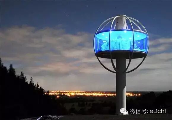 从外形来看,玻璃房子里透出的不同色彩的 LED 灯,就像各种不同口味的棒棒糖。房子下方靠一根坚固的钢塔支撑着,内部建有楼梯爬上去。上面则是天窗和负责提供能量的太阳能板。