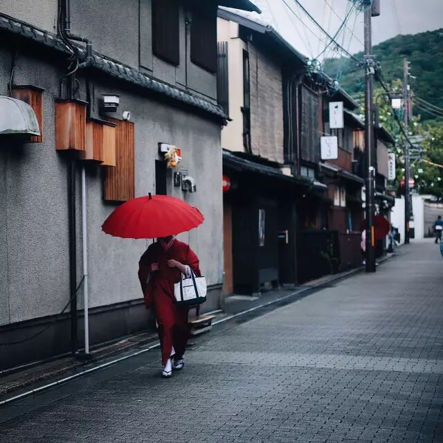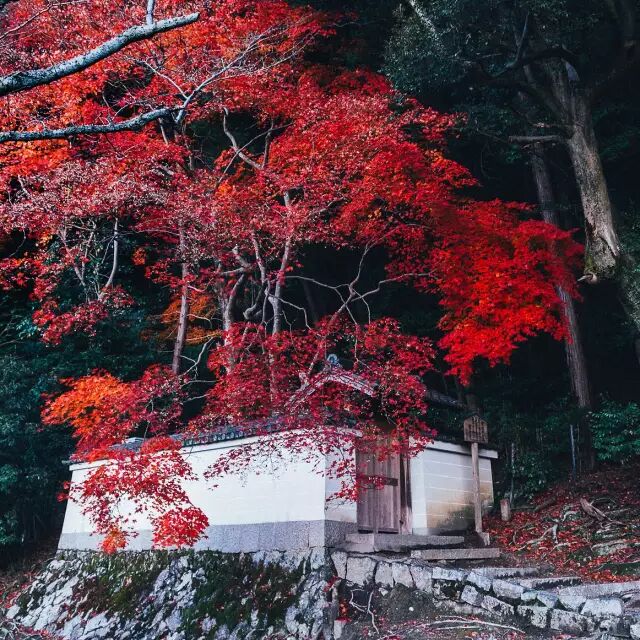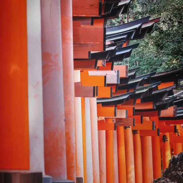 上千座朱红色鸟居宛如红色长龙通往稻荷山山顶。