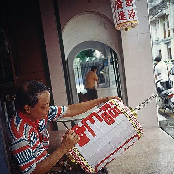 不知第几代的下南洋华人,仍在灯笼上描画祖宗的文字:“财源广进”。