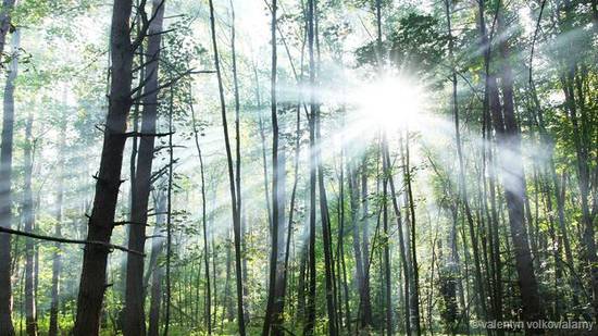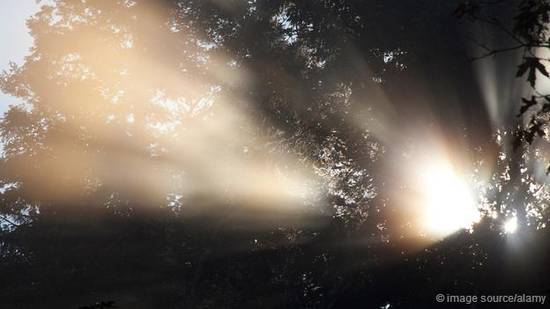 树林中透出的光线:光是我们体验这个世界的基础,人类的眼睛是光子探测器,我们借助可见光了解我们身边的世界。