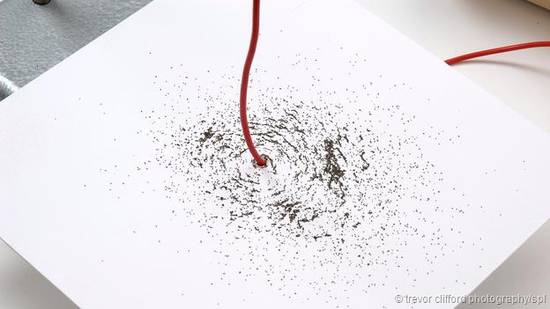 通电的导线周围会产生磁场,在这个磁场的作用下,铁屑发生定向排列。