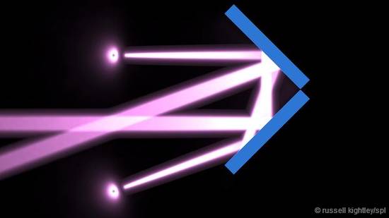 牛顿注意到,光在镜面间遵循严格的入射和反射路径,他意识到这是粒子流的特点。