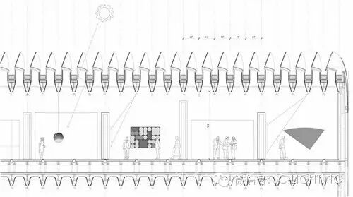 ▲这个博物馆喜欢北面的柔和光线,所以有曲面的扇叶天窗和带角度的玻璃孔洞来捕捉光线。
