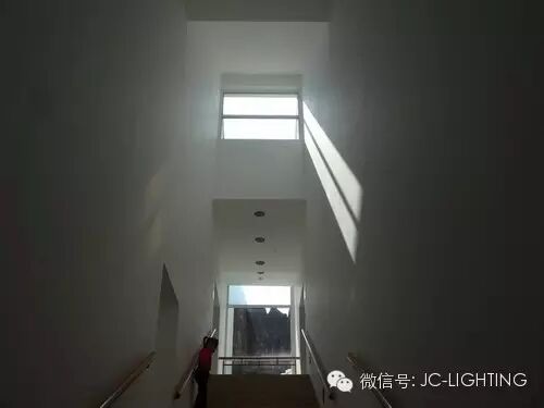走廊在空间上层采用顶窗,高侧窗引入强光,通过墙面多次反射,使人的视觉尺度上光线柔和。