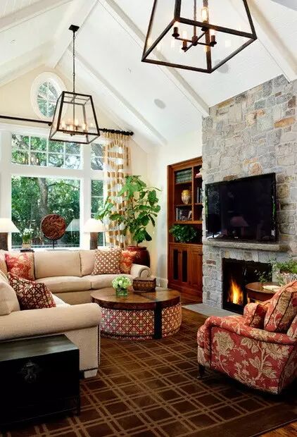 ▲与房梁搭配出非常有设计感的客厅吊灯