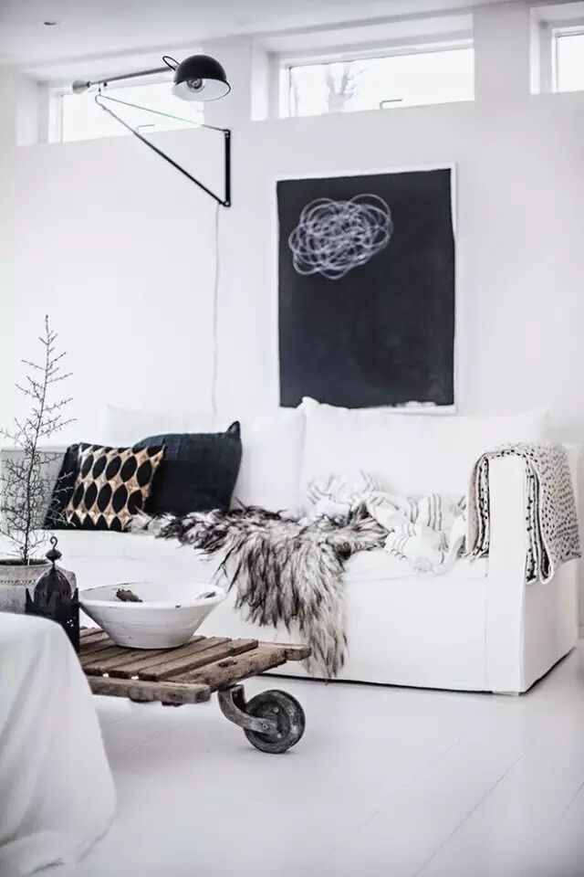 配合黑白色地毯和布帘