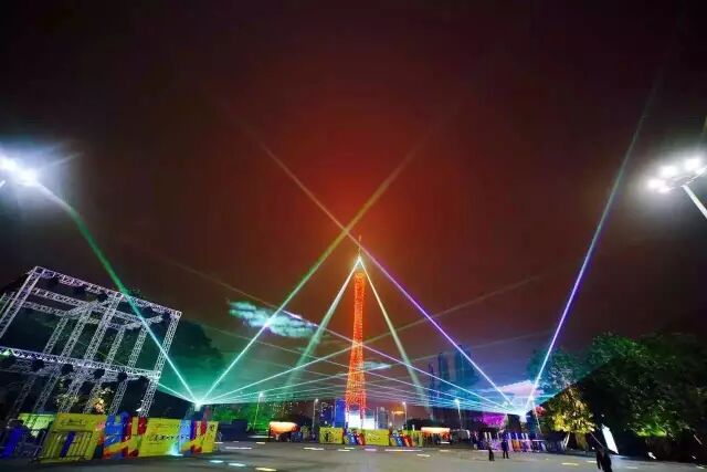 图:高塔之光交织成网、互相激荡(激光表演)