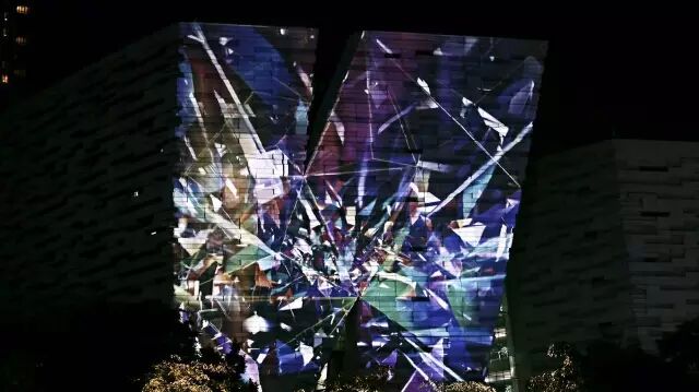 图:广图外墙变身一汪波光粼粼的水,各色图案变幻