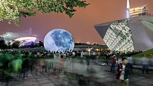 图:大剧院外“月球”洒落清辉引遐想