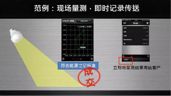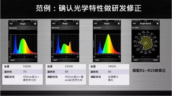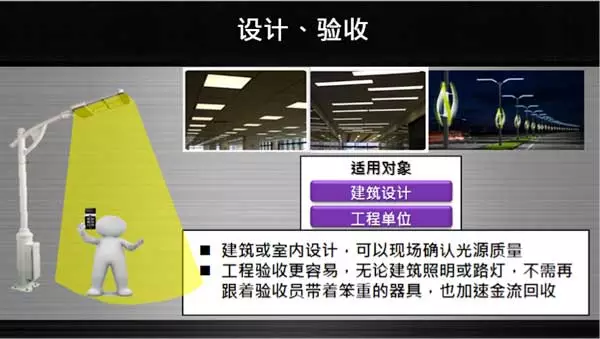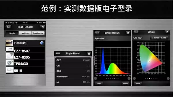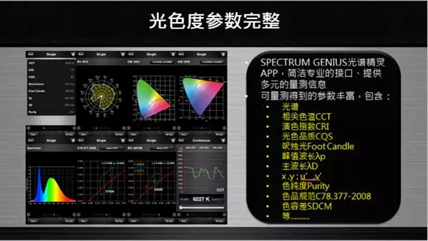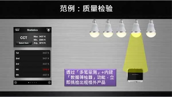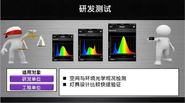 当别人还在为这款灯具是 3000K 还是 4000K 争执不下时,你从容地从口袋里掏出一个小巧精致的东西,打开手机一按,淡定地说:这款灯具的色温是 3658K ,嗯,R9 不是很好,只有 10 ,色容差还不错,在 3 step 里面。全场的小伙伴们都惊呆了。。。