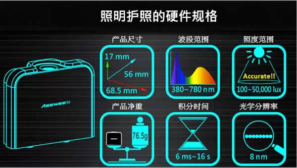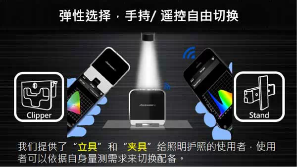 照明护照,简单来说,就是你的移动照明实验室,把以前需要各种大型笨重仪器来做的工作,通过一个小巧便携的智能硬件来解决,并通过我们随身携带的手机app提供强大的功能,进行控制。