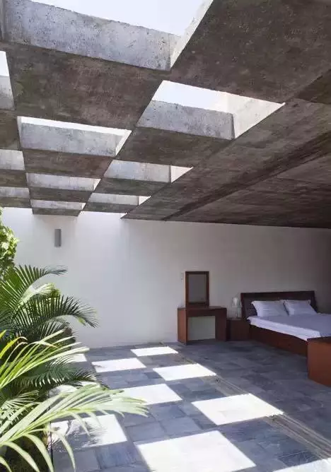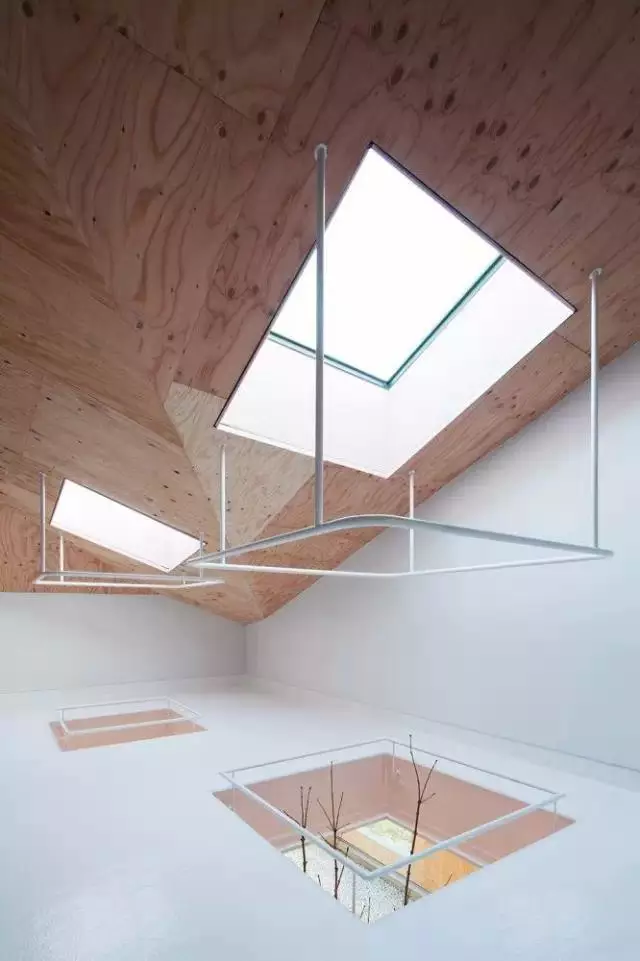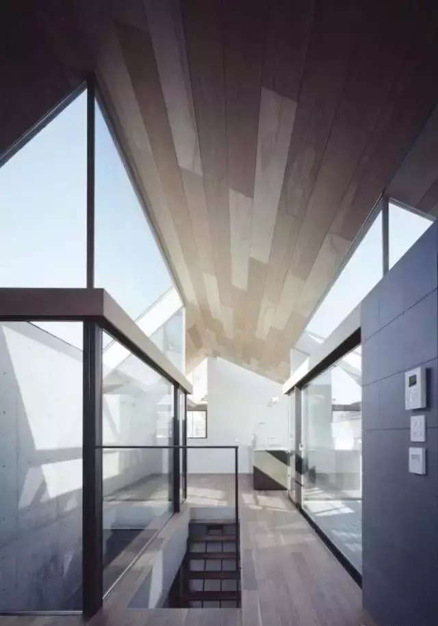 从天窗进入室内的光线往往富有更多精神上的内涵。不仅如此,天窗改变了通常的空间围合状态,使顶部围合产生了通透的效果。
