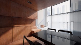 棕色与白色给人一种温暖舒服的感觉,整体设计运用棕色与白色再加上一点黑色。三种简单却经典的颜色碰撞出不一样的设计感。这一案例出彩的地方不仅仅是在颜色的使用上,更多的是充分利用了自然光。当自然光充分照入室内将室内与室外连接起来,视觉上会使得室内空间更加开阔,也能使室内更加明亮。